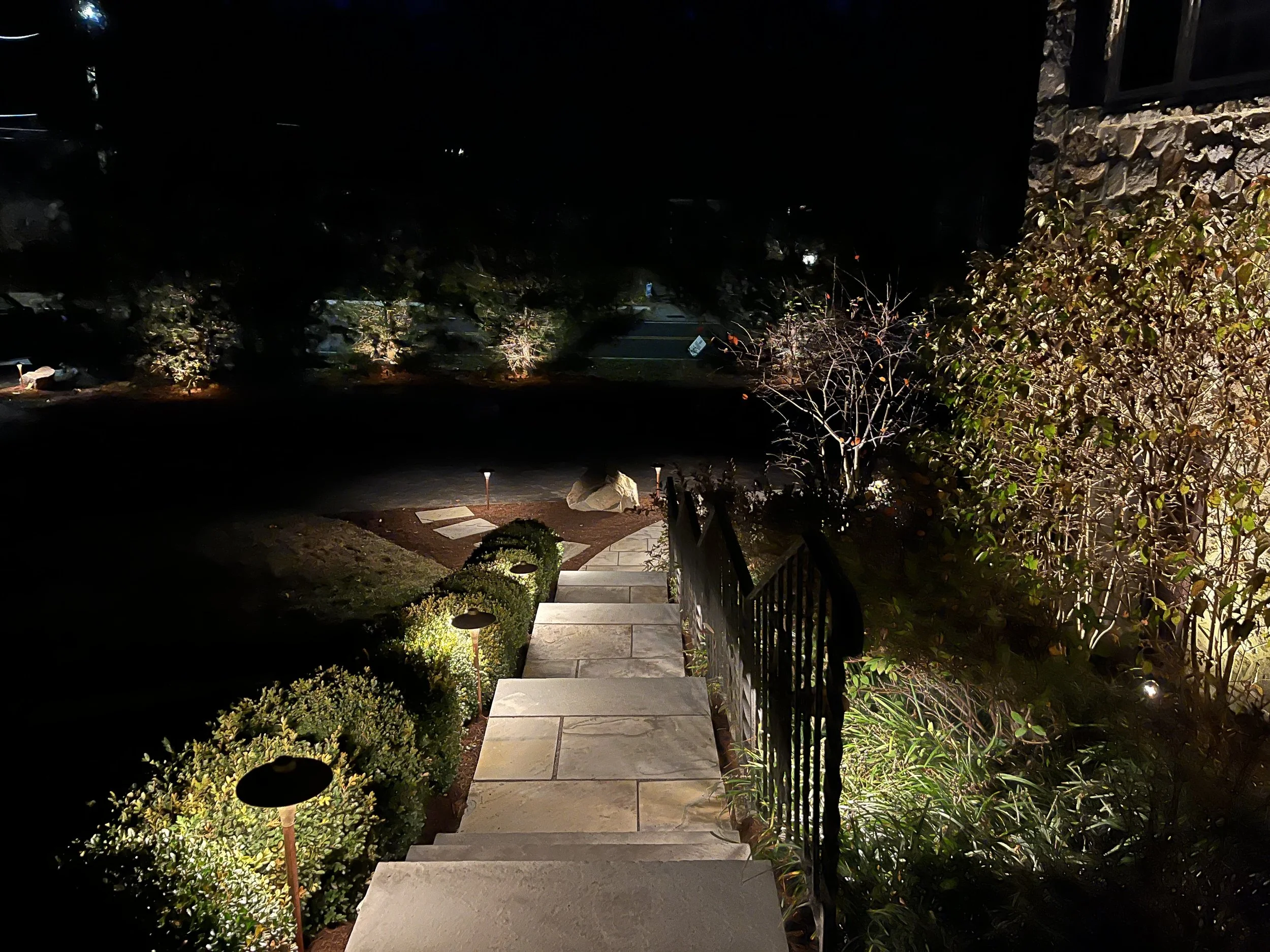 What a difference shedding some light on the situation can do! Accenting your outdoor spaces with the appropriate lights can transform your gardens into a spectacular scene. We specialize in using Cast brand outdoor lighting mainly for their durability and natural features. When designing your lighting, we take into consideration the nuances that create a comfortable and pleasing look when lit in the evening. We run all the wires discreetly underground and create access points for repairs or future extensions. To top it off we run the lights on an adjustable timer so you don’t ever have to think about clicking them on/off. Lighting is an essential finishing touch to highlight stone and plants into a unique, natural and beautiful image.