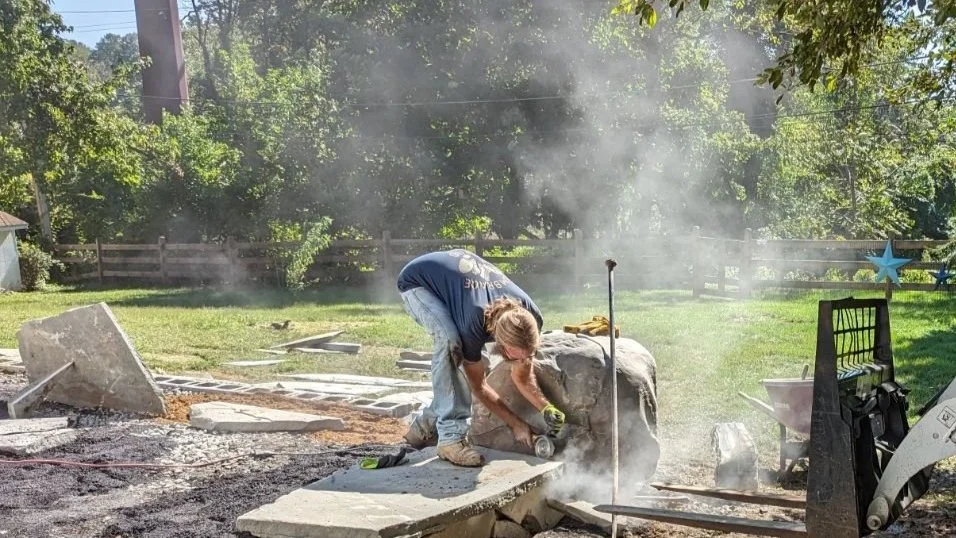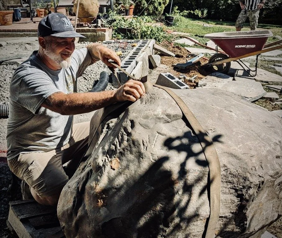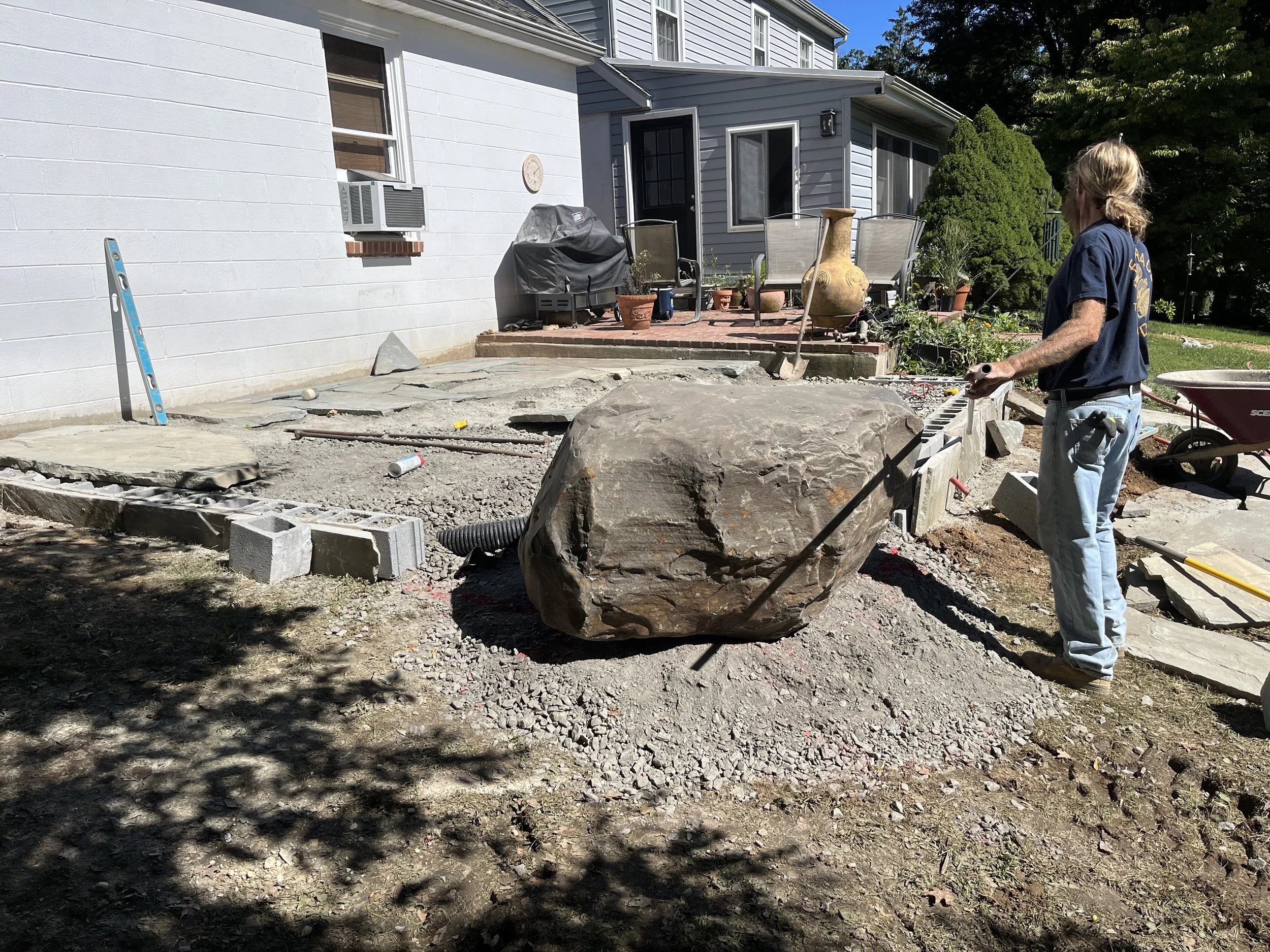 Place the boulder, then build a natural flagstone patio up to it for a unique look